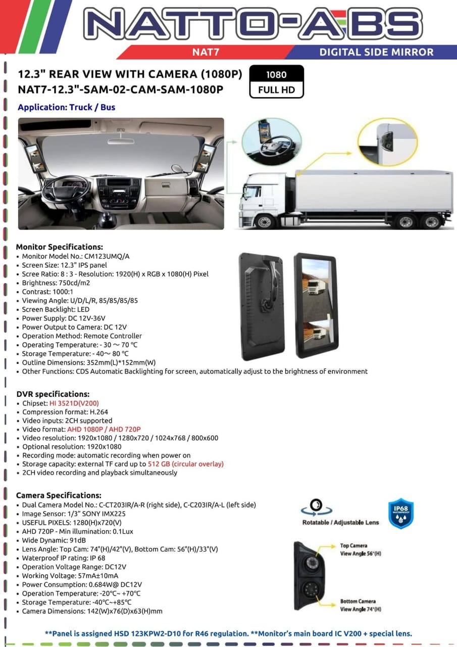 Upgrade your truck or bus with the NATTO-ABS 12.3″ Digital Side Mirror System!