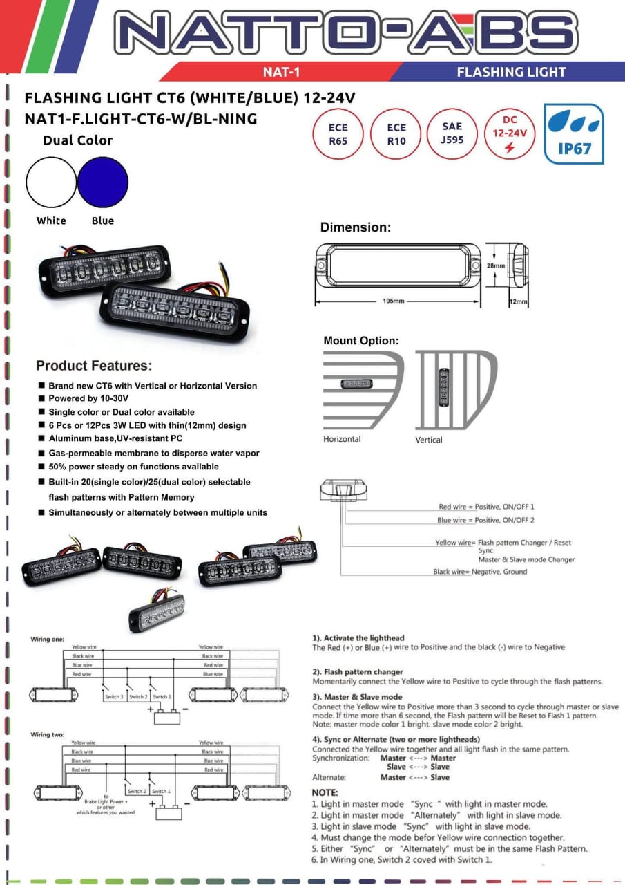 Flashing Light CT6 (White/Blue) 12-24V Dual Color
