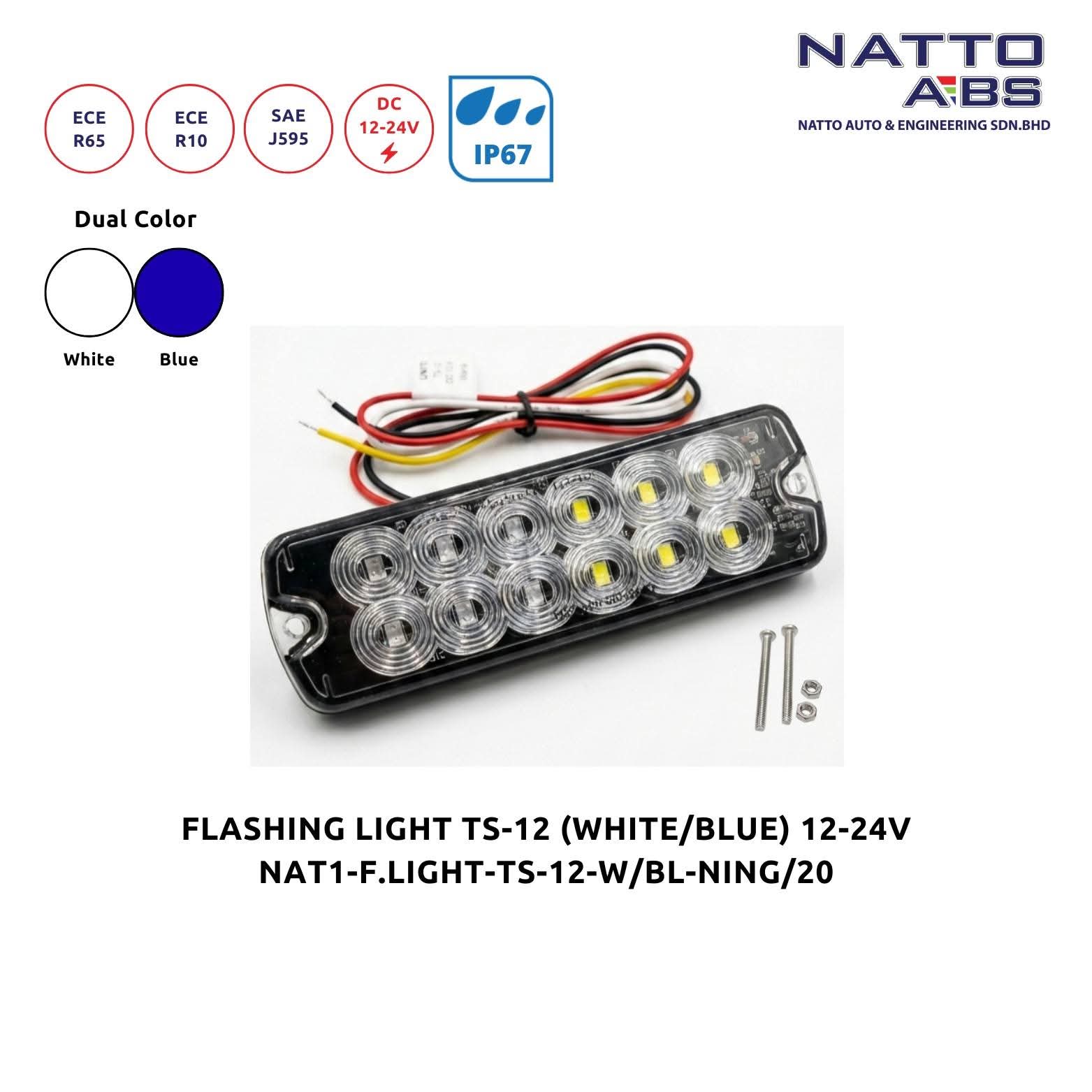 Flashing Light TS-12 (White/Blue) 12-24V Dual Color