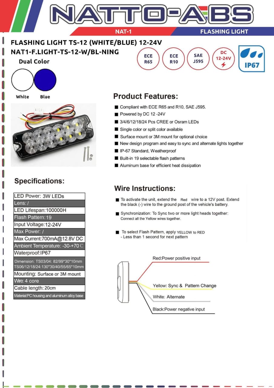 Upgrade your vehicle’s warning system with our heavy-duty Dual Color (White/Blue) Flashing Light TS-12. Whether you’re outfitting a security fleet, utility truck, or emergency vehicle, this light is engineered to perform in the toughest conditions.