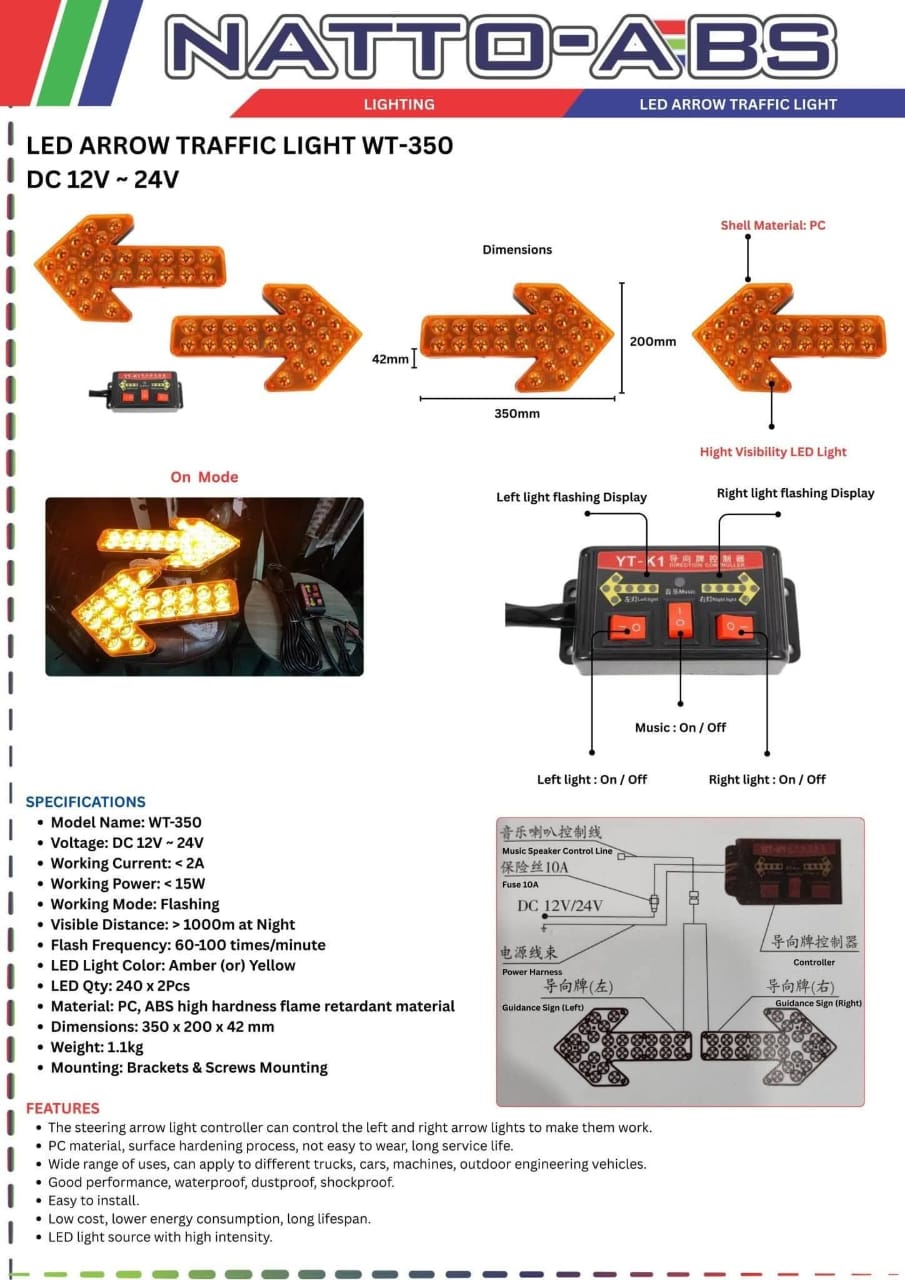 Working on the road requires maximum visibility. Ensure your vehicle is seen from over 1km away with the new NATTO ABS LED Arrow Traffic Light (WT-350).
