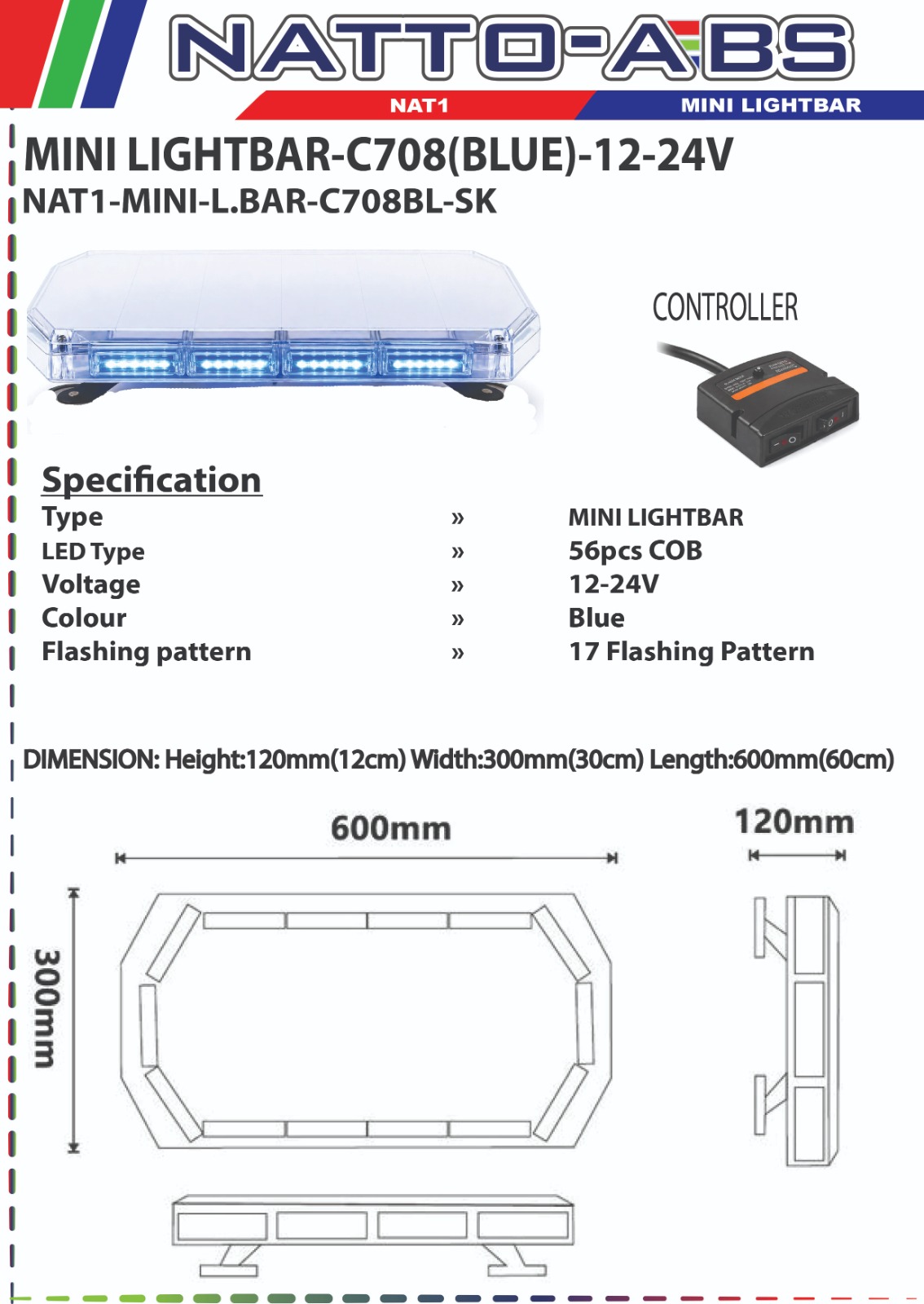 Upgrade your fleet’s safety with the NATTO-ABS MINI LIGHTBAR-C708 (Blue). Engineered for high performance, this 600mm lightbar packs intense brightness into a streamlined, low-profile footprint.