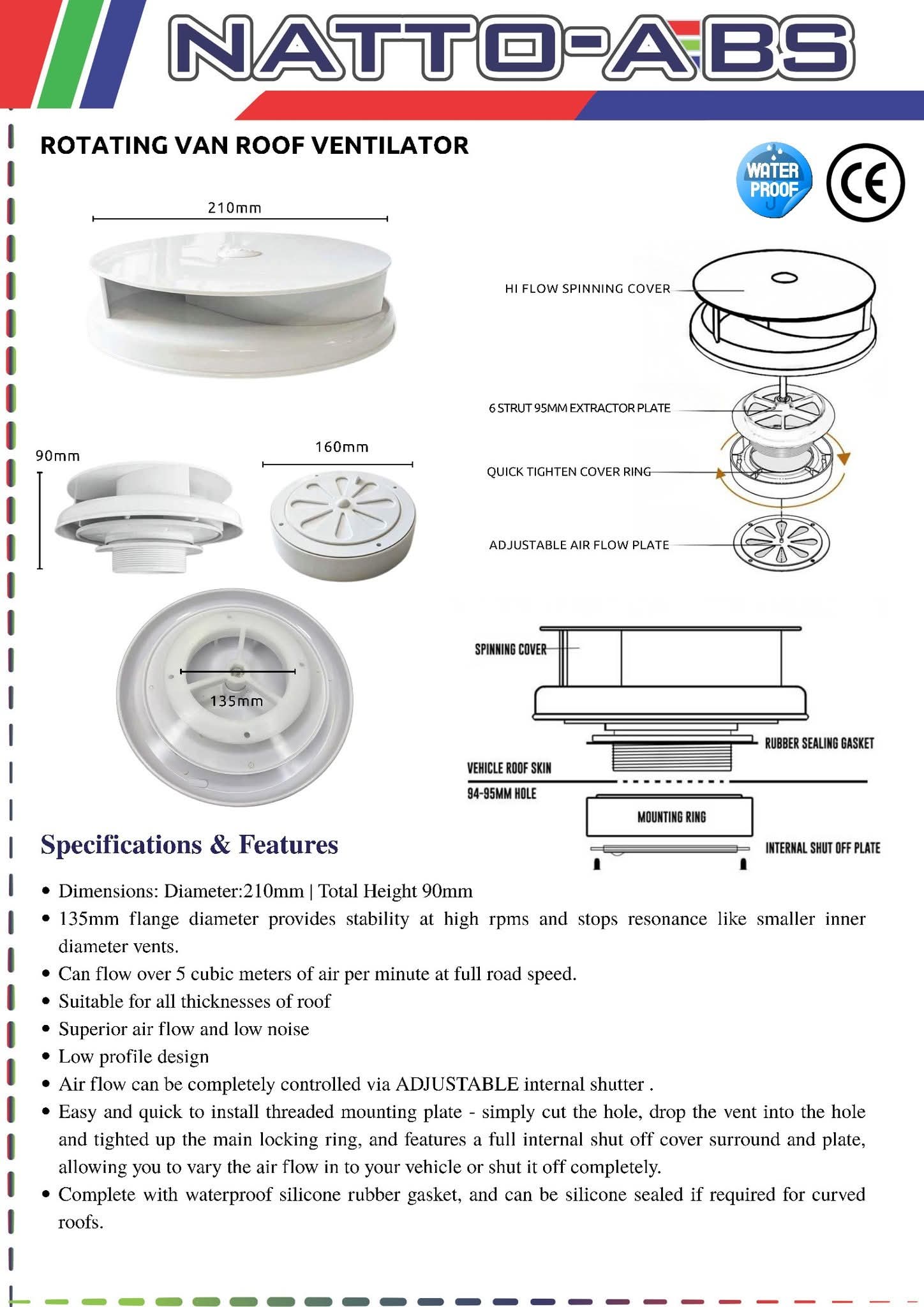 Introducing the NATTO-ABS Rotating Van Roof Ventilator β designed for maximum airflow, low noise, and easy installation.