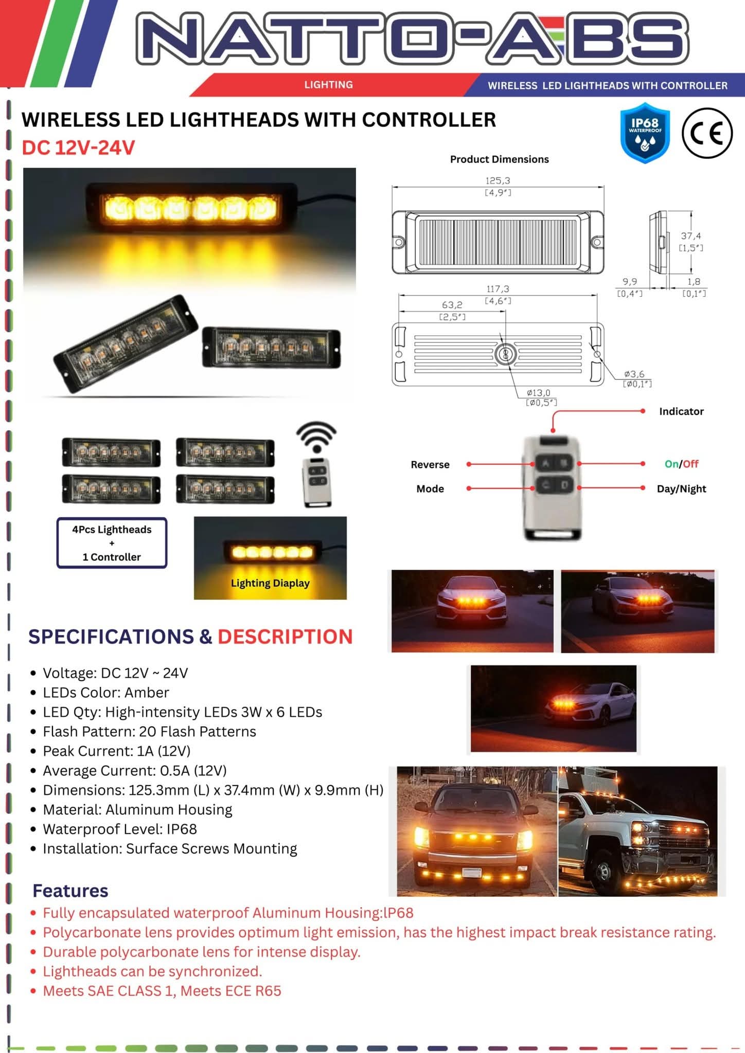 Stay visible and safe on the road with Natto-ABS LED Lightheads with Wireless Controller.